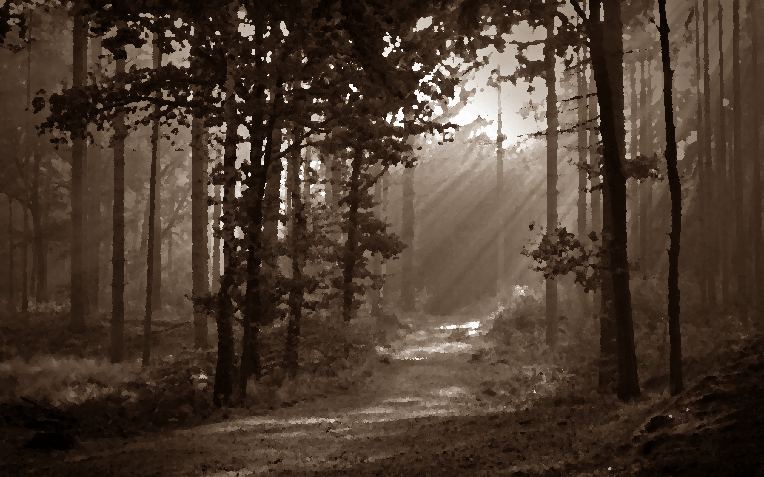 Le jour où le signal du départ vers la forêt de Rialgos doit être donné, une forte tempête de neige (nous sommes en plein hiver) contraint l’expédition à le postposer. Durant six jours, la neige tombe drue, chassée par des rafales de vent mordant. C’est donc sur une épaisse couche de neige qui rend difficile la progression que la caravane se met en route le 01/12/2090. Elle s’étire paresseusement dans la plaine blanchie, les éclaireurs progressant un peu devant pour prévenir des éventuels dangers tandis que les lourds chariots de vivres et d’armes se traînent à l’arrière et dictent au gré de leurs roues cassées et de leurs embourbements fréquents le rythme de progression de l’expédition. Ce n’est donc qu’après sept longues journées ponctuées de quelques attaques d’orcs égarés que l’orée de la sombre forêt est atteinte et que le chef de la caravane, un rôdeur du nom de Melpharo, donne le signal du repos. Sous les noires frondaisons des antiques chênes peuplant l’est de Rialgos, les hommes et les animaux transis et épuisés prennent deux journées de repos, journées qu’ils passent néanmoins à préparer la partie la plus dangereuse de leur voyage : la traversée de celle qu’on appelle aussi « la forêt aux Trolls ».